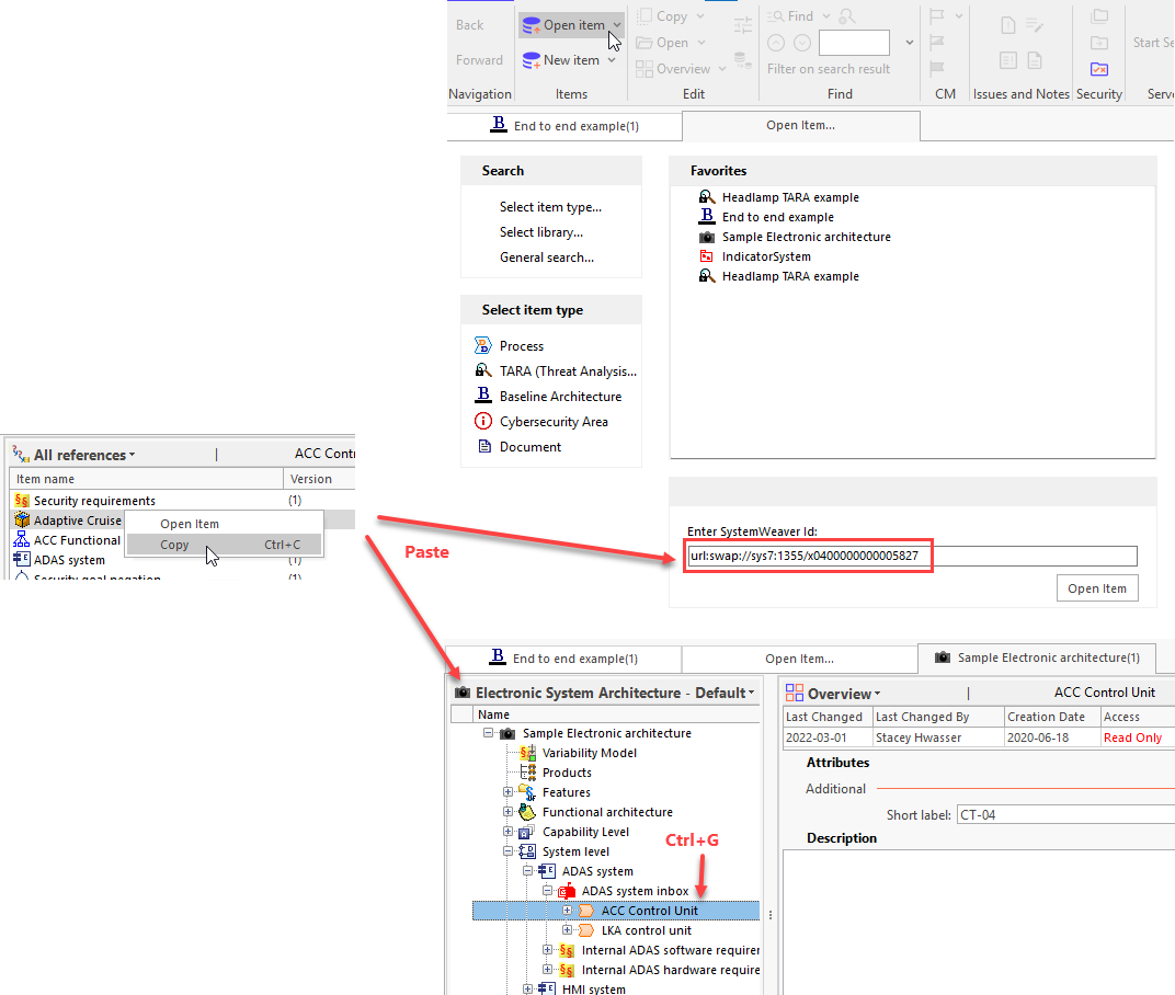 If you want to find one of the items in a structure, for example, it is possible to copy (Ctrl+C) an item in the list and look for it in a structure tree or a view using Ctrl+G.